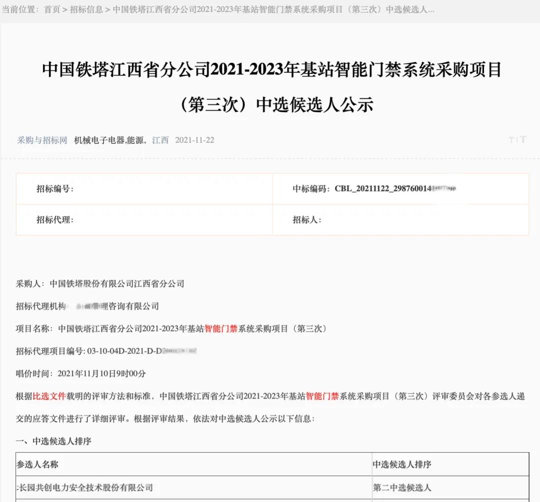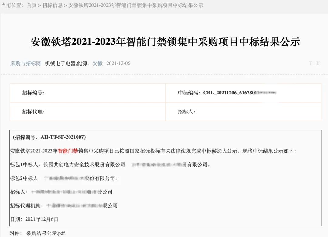 新突破 | 今年会jinnianhui共创连续中标安徽、江西铁塔智能门禁锁项目